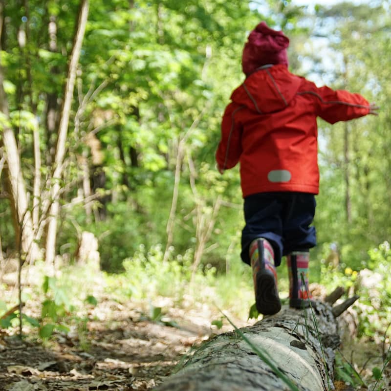 Wir sind besonders stolz auf unser angrenzendes Waldstück. Dort können die Kinder Naturerfahrungen mit allen Sinnen und bei jedem Wetter sammeln. Hier kann mit Stöcken gebaut, auf Baumstämmen balanciert, Schätze gesammelt, beobachtet und getobt werden.